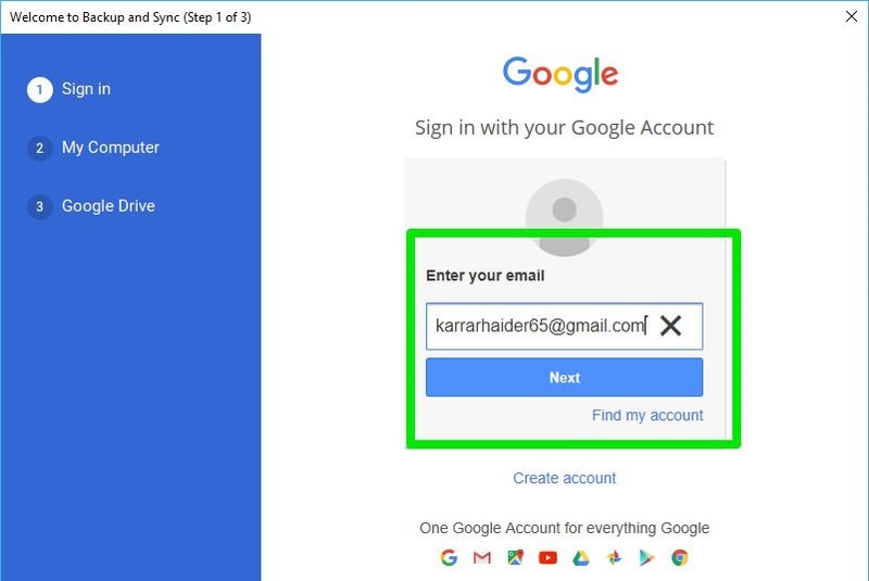 আপনার পিসিতে যদি আগে থেকেই গুগল ড্রাইভ চালু না থাকে তাহলে আপনার ইমেইল আইডি দিয়ে গুগল ড্রাইভটি চালু করুন এবং সাইন ইন করে নিন। এবার স্টার্ট মেনুর প্রোগ্রাম ফাইলস থেকে কিংবা গুগল ড্রাইভের স্টার্ট মেনু শর্টকাট থেকে More অপশনে গিয়ে Open File location সিলেক্ট করুন। গুগল ব্যাকআপ এন্ড সিঙ্ক ফোল্ডার আসবে। এবার নিচের ধাপগুলো অনুসরণ করুন: