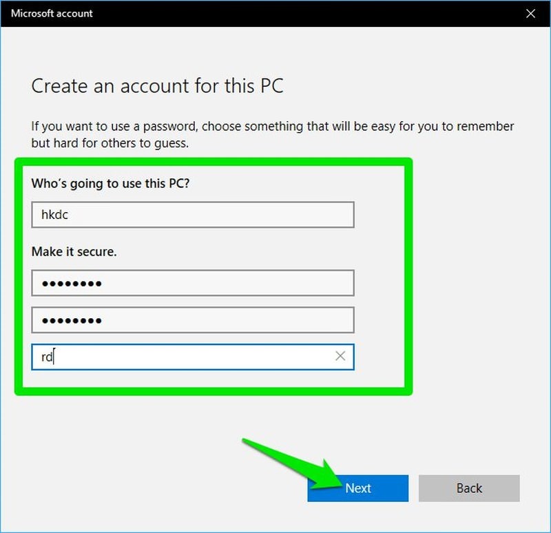 ৫) এবার পরবর্তী পেজ থেকে নতুন ইউজার নেমের নাম এবং পাসওর্য়াড দিয়ে Next বাটন চেপে একাউন্টটি তৈরি করে নিন।