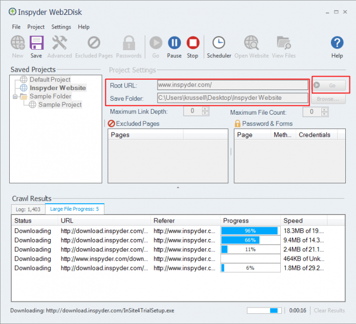 ডাউনলোড করে ইন্সটল দেবার পর সফটওয়্যাটি চালু করুন। এবার আপনাকে শুধু Root URL বক্সে কাঙ্খিত ওয়েবসাইটের ঠিকানা লিখতে হবে এবং Save Folder বক্সে পিসির কোথায় ফাইলটি সেভ করবেন সেটি দেখিয়ে দিতে হবে আপনাকে। তারপর Go বাটনে প্রেস করে ডাউনলোড প্রক্রিয়াটি শুরু করতে হবে।