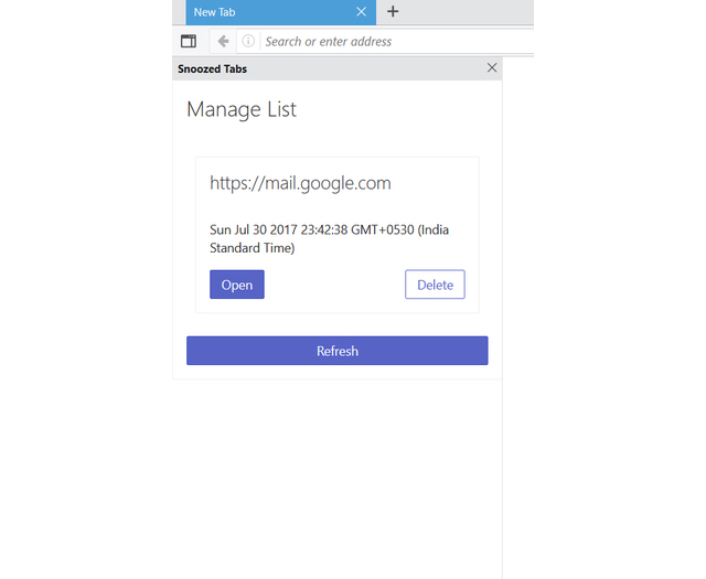 যারা ফায়ারফক্স ব্রাউজার ব্যবহার করেন তাদের জন্যেও এই পদ্ধতি ব্যবহার করতে হলে একটি Snooze Tabs নামক এক্সটেনশন ব্যবহার করতে হবে। প্রথমেই Snooze Tabs এক্সটেনশনটি ডাউনলোড এবং ইন্সটল করে নিন এই লিংক থেকে। তারপর নিচের ধাপগুলো অনুসরণ করুন: