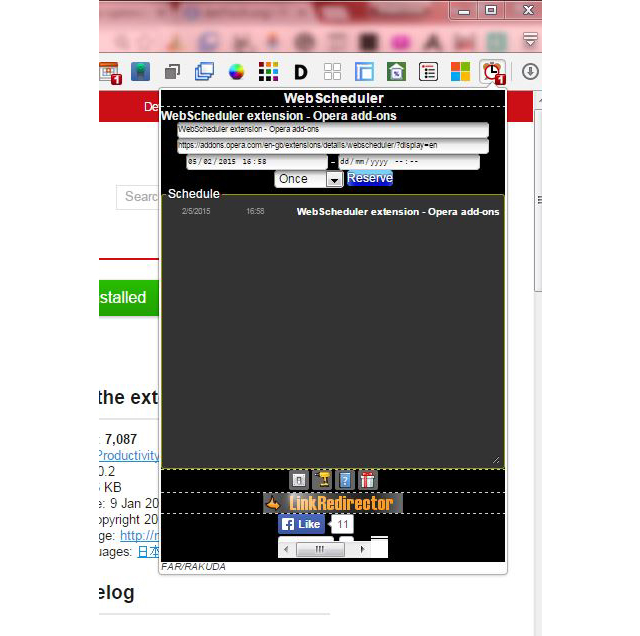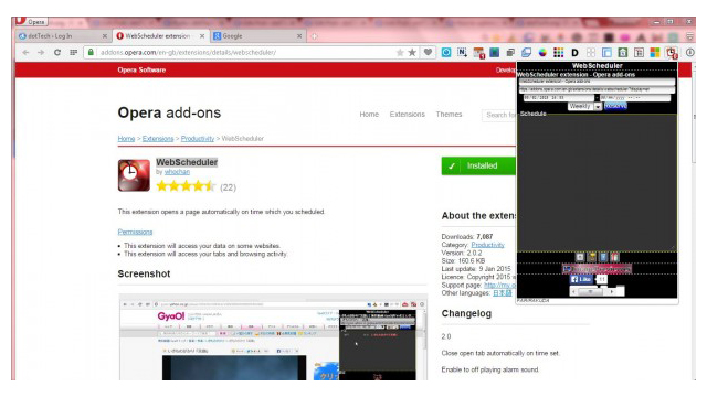 যারা অপেরা ব্রাউজার ব্যবহার করেন তাদের জন্যেও এই সুবিধাটি উপভোগ করার সিস্টেম রয়েছে। এর জন্যেও আপনাকে অপেরাতে WebScheduler নামের একটি এক্সটেনশন ব্যবহার করতে হবে। বরবরের মতোই প্রথমে WebScheduler এক্সটেনশনটি অপেরাতে ডাউনলোড এবং ইন্সটল করে নিন এই লিংক থেকে। তারপর নিচের ধাপগুলো অনুসরণ করুন: