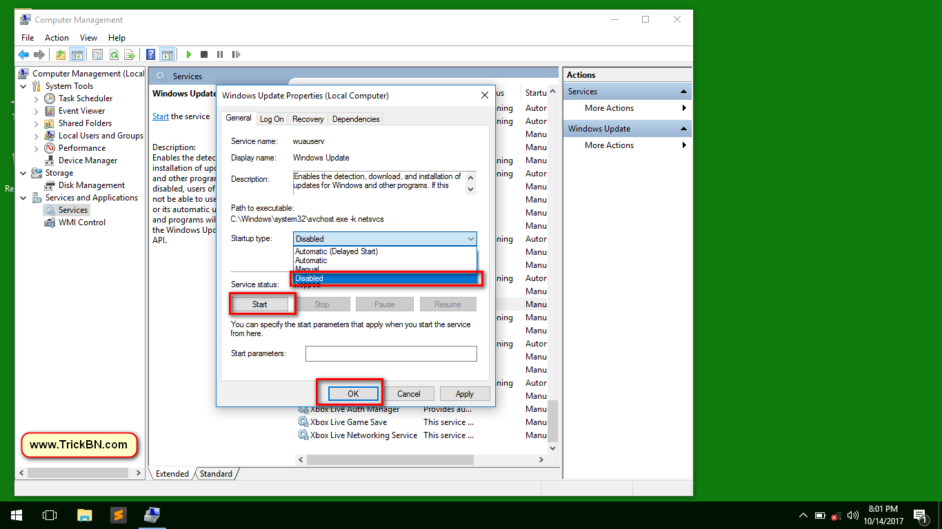 তারপর Disable সিলেক্ট করে Start এ ক্লিক করে OK চাপুন ব্যাস আপনার কাজ শেষ এখন থেকে প্রয়োজন ছাড়া আর এক এমবিও কাটবেন আপনার ল্যাপটপ বা ডেস্টটপ থেকে।