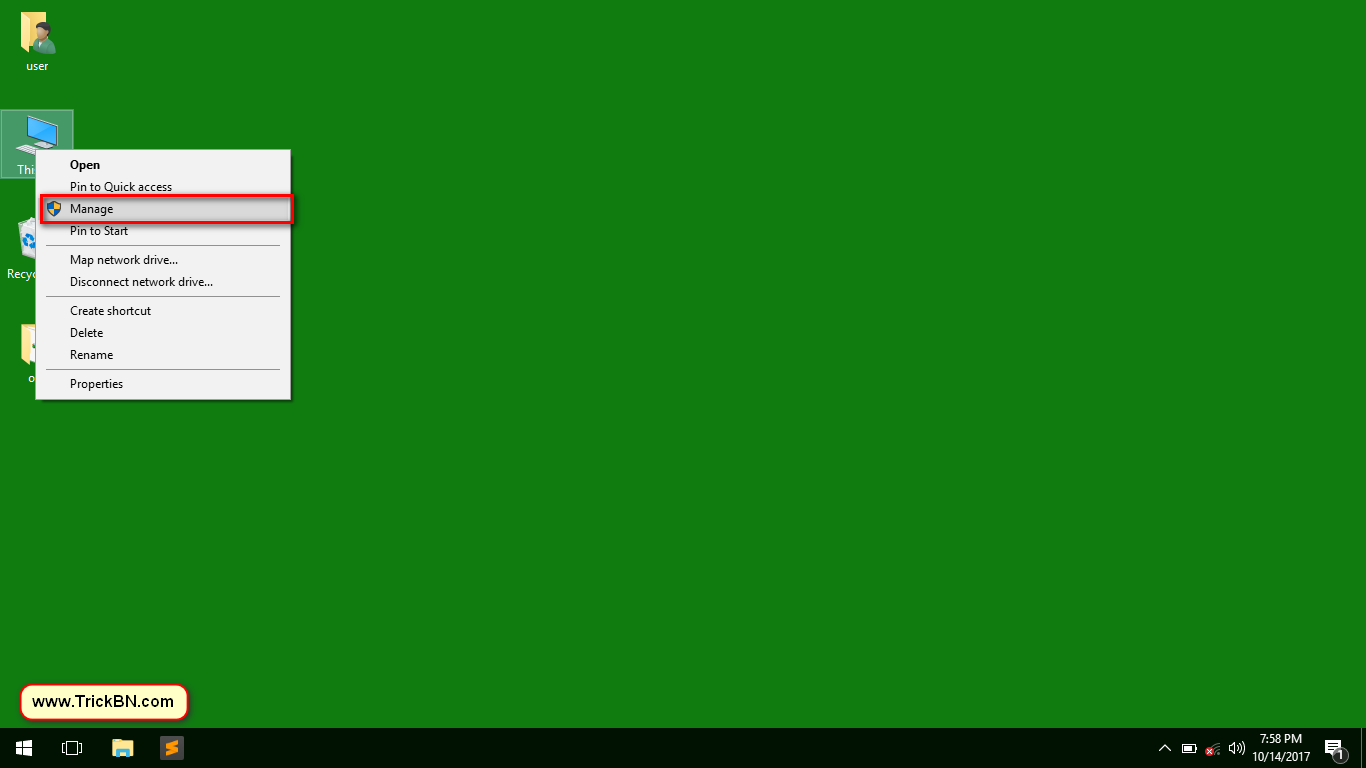 My Computer এ রাইট বাটনে ক্লিক করে Manage এ ক্লিক করুন