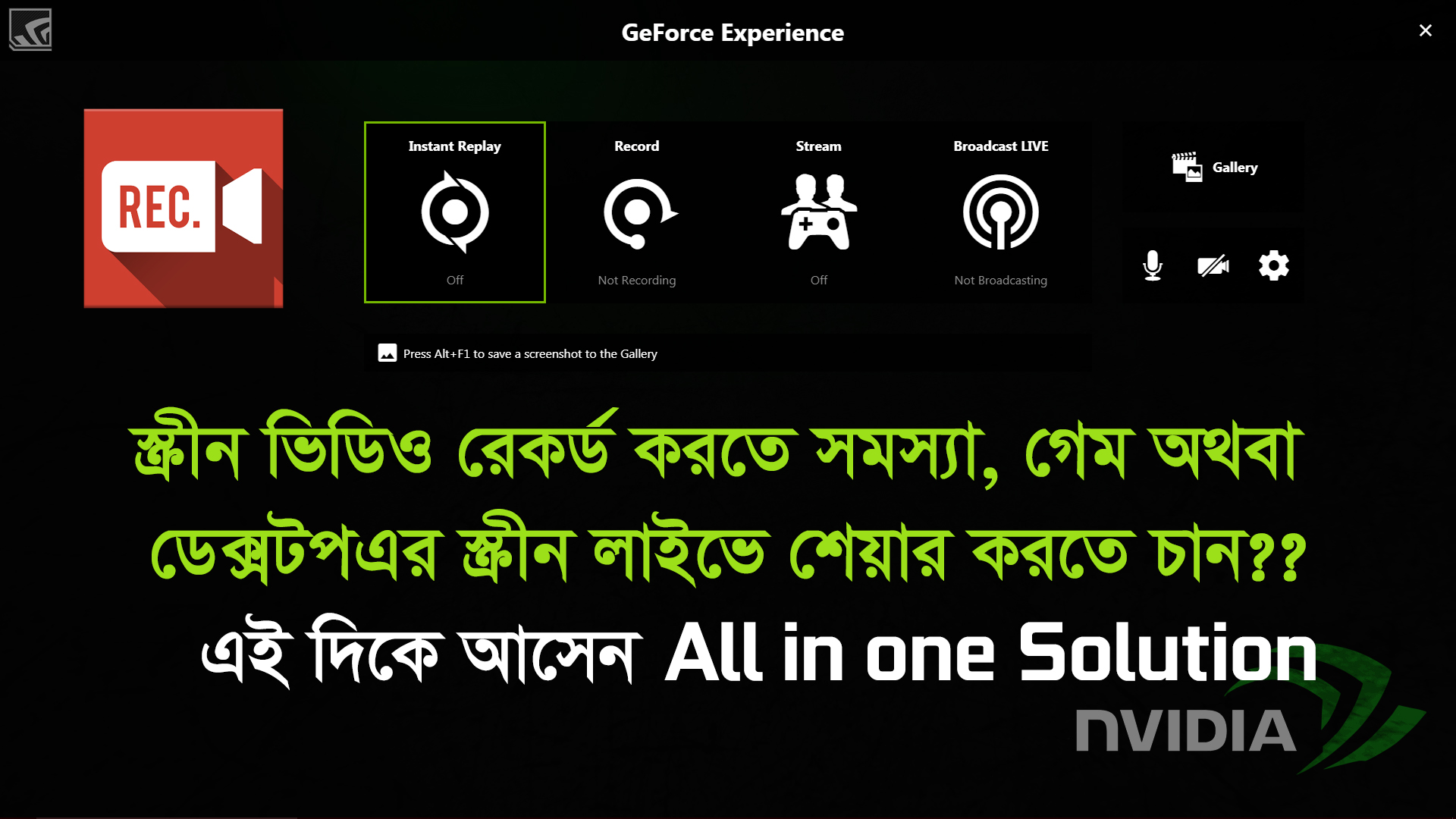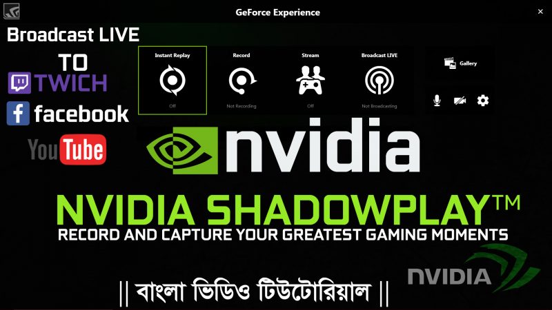 আমি এই পর্যন্ত অনেক রকম স্ক্রীন ভিডিও রেকডিং সফটওয়্যার ব্যবহার করেছি কিন্তু এনভিডিয়া Shadowplay এর মতো ইজি এবং খুব সহজে ব্যবহার উপযুগি এতো ভালো সফটওয়্যার আর পাই নাই। শুধু স্ক্রীন ভিডিও রেকর্ড না আরো অনেক কিছু আছে টিউন এর শেষ পর্যন্ত পড়লে জানতে পারবেন।