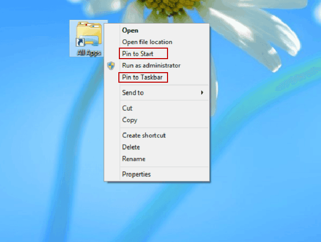 প্রসঙ্গত, সমস্ত অ্যাপ্লিকেশানের জন্য তৈরী করা All Apps শর্টকাটটি আপনি টাস্কবার (Taskbar) বা স্টার্ট স্ক্রিনেও (Start Screen) পিন করে রাখতে পারেন। আর এজন্য শর্টকাট টির উপর Right click করে কন্টেক্সট মেনু থেকে পিন টু স্টার্ট (Pin to Start) বা পিন টু টাস্কবার (Pin to Taskbar) নির্বাচন করতে পারেন।