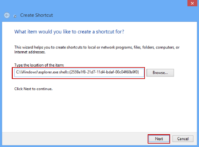 ধাপ ২ঃ নিচের বক্স থেকে কোড টী কপি (Copy) করুন এবং স্ক্রিনে চিহ্নিত বক্সে পেস্ট (Paste) করুন। এরপর শর্টকাট উইন্ডোর Next এ ক্লিক করুন।