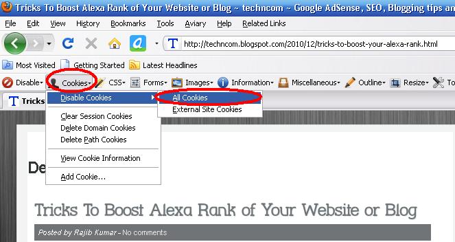 ৩। Web Developer এড-অন্স থেকে “Cookies” Disable করে দিন।