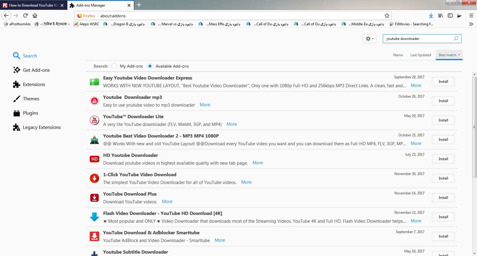 ব্রাউজার এক্সটেনশন ব্যবহার করে আপনি আপনার পছন্দের ব্রাউজারে ইউটিউব ভিডিও ডাউনলোড করার জন্য বিশেষ এই জাতীয় এড অনসকে ইন্সটল করে নিতে পারেন। তারপর ইউটিউব ভিডিও লোড করার সময় আপনি এই সকল এক্সটেনশনগুলোর সাহায্যে সরাসরি ভিডিও ডাউনলোডের সুবিধা পাবেন। এর জন্য আপনার ব্রাউজারের এডড অন অপশনে গিয়ে Youtube Video Downloader লিখে সার্চ দিন। অনেক গুলো এড অনস আপনার সামনে এসে যাবে। এখান থেকে আপনার পছন্দমত এড অনসটি পরখ করে নিতে পারবেন।