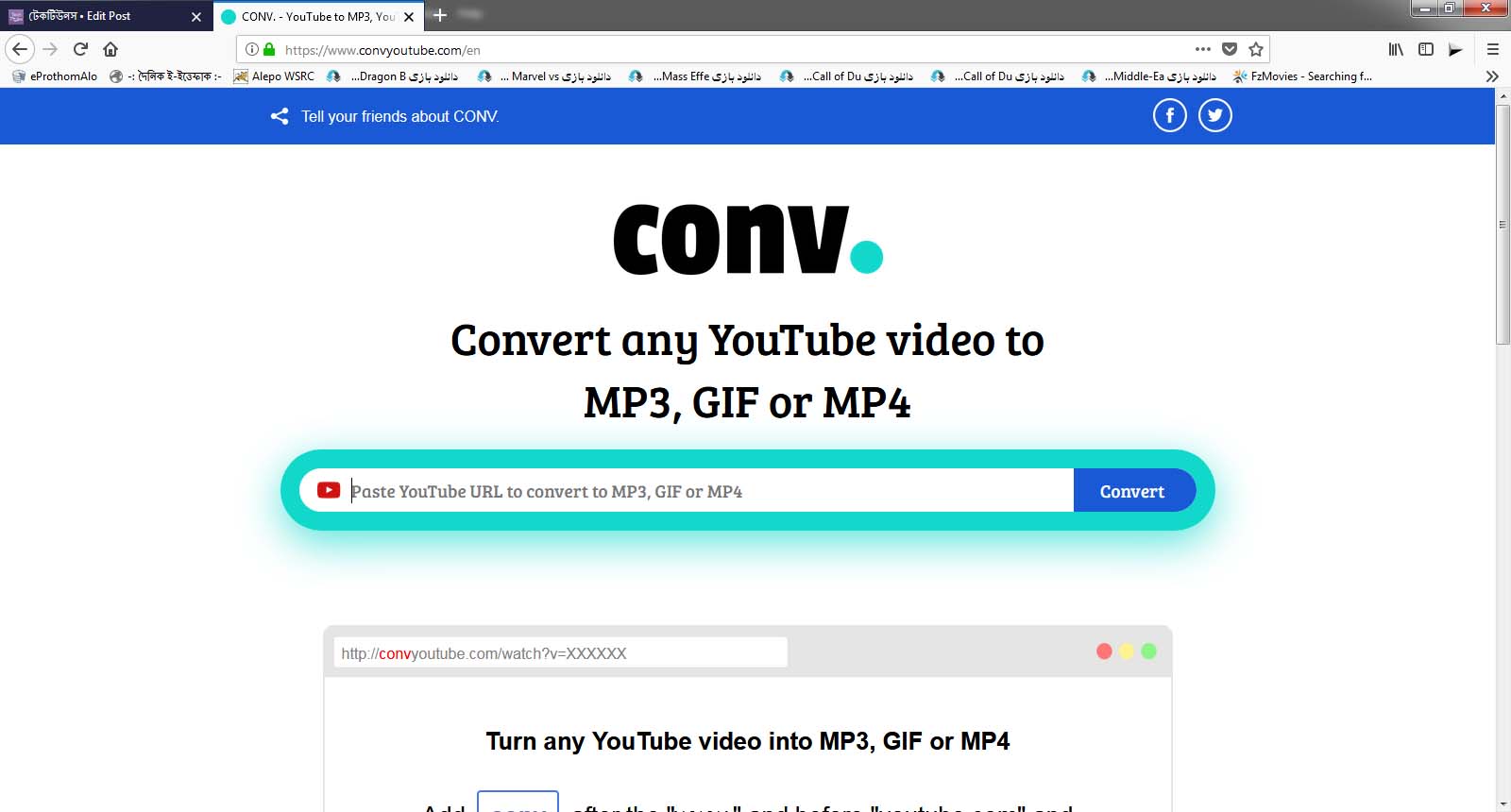 এ ধরনের অনেকগুলো সাইটই রয়েছে। তবে এদের মধ্যে conv এবং SaveFrom.net আমি বেশি ব্যবহার করে থাকি। অনান্য অনেক সাইট থাকলেও আমি আজকের টিউনে এই দুটি সাইটটিই আপনাদের কাছে রেকোমেন্ড করবো কারণ এই দুটি সাইটে কোনো প্রকার এড নেই, স্পিড লিমিট নেই এবং একই সাথে একাধিক ভিডিও আপনি সাইট থেকে ডাউনলোড করতে পারবেন।