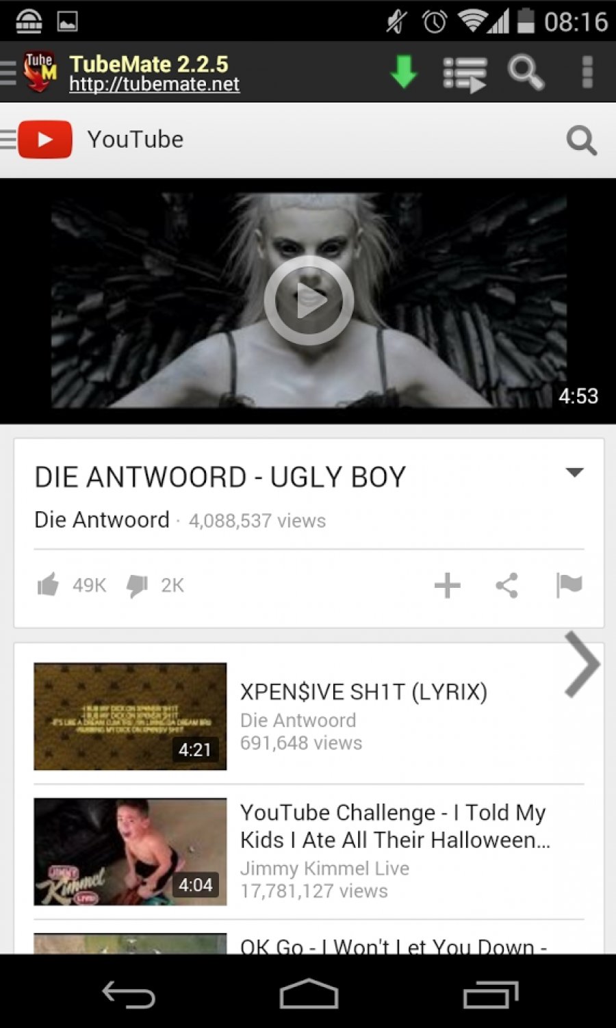 অ্যান্ড্রয়েডে সহজে ইউটিউব ভিডিও নামানো সব থেকে জনপ্রিয় এপপস হলো TubeMate! এটি শুধুমাত্র ইউটিউব নয় বরং এটির সাহায্যে যেকোনো সাইট থেকে আপনি ভিডিও নামাতে পারবেন। কারণ এটি হচ্ছে একটি ব্রাউজার! আর এখানে লিংক প্রবেশ করি সাইটে ব্রাউজ করবেন এবং অ্যাপসের উপরে সবুজ ডাউনলোড এরো বাটনে ক্লিক করলে আপনি ভিডিওটি নামানোর বিভিন্ন অপশন পাবেন। নির্দিস্ট অপশনটি পছন্দ করে নিলেই ডাউনলোড শুরু হয়ে যাবে! এটা এতটাই সহজ এবং সিম্পল! টিউবমেটের সাহায্যে আপনি একাধারে একাধিক ভিডিও নামাতে পারবেন এবং mp3 converter ও ব্যবহার করতে পারবেন। তবে উচ্চ মানের রেজুলেশনের ভিডিও নামাতে হলে আপনাকে একটি এক্সট্রা সফটওয়্যার ইন্সটল দিতে হবে যেটা টিউবমেট যথাসময়েই আপনাকে সেটা ইন্সটল করার জন্য তাগিদ দিয়ে দিবে। টিউবমেট সফটওয়্যারটি ডাউনলোড করে নিন এই লিংক থেকে।