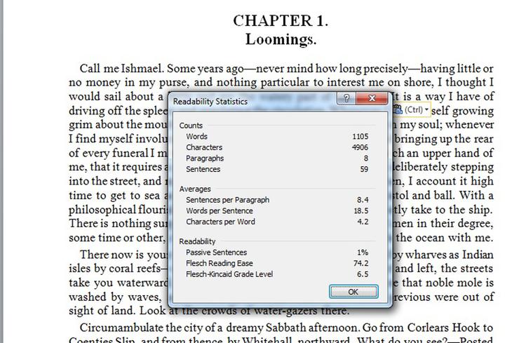 মাইক্রোসফট ওর্য়াডের নতুন সংস্করণগুলোতে গ্রামার এবং স্পেলিং এর সাথে নতুন ফিচার Readability Statistics টিও যুক্ত করে দিয়েছে। এর মাধ্যমে ওর্য়াডে বেশ কটি নতুন টেস্ট যেমন Flesch Reading Ease Test এই জাতীয় টেস্ট যু্ক্ত করে দিয়েছে। এইটি আপনার টাইপিংয়ের ওয়ার্ড, সেনটেন্স এবং সিলেবলগুরোকে ১০০ পয়েন্টের উপর পরীক্ষা করে থাকবে। এক্ষেত্রে ১০০ পয়েন্টের মধ্যে যত বেশি নাম্বার আপনি পাবেন আপনার টাইপিংটি ততবেশি পঠনযোগ্য বলে বিবেচিত হবে। সাধারণত ৬০ থেকে ৭০ এর মধ্যে পয়েন্ট পেলেই সেটি পঠনযোগ্য বলে বিবেচিত হবে।