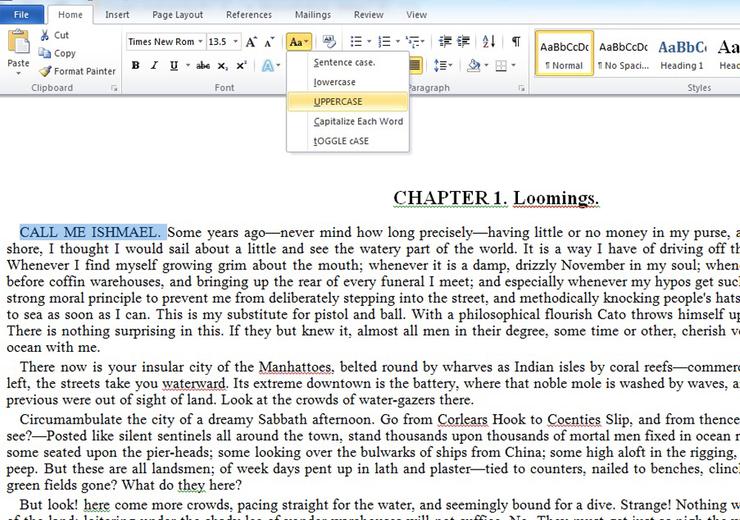 ওর্য়াডে ডকুমেন্টে কোনো লেখা টাইপিংয়ের সময় আপনি সহজে চাইলে অক্ষর আপারকেস বা লোয়ারকেস করে নিতে পারেন Shift বা ক্যাপসলক বাটনটি চেপে টাইপ করলে। কিন্তু কোনো ডুকুমেন্ট সম্পূর্ণ লেখা হয়ে গেল যদি কোনো লাইনকে বড় হাতের অক্ষরে রুপান্তর করতে হয় তখন কি করবেন?