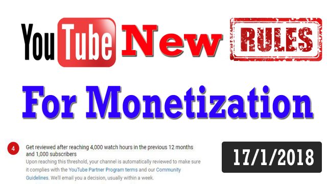 ইউটিউবে আগে চ্যানেল শুরু করলেই মনেটাইজ অন করা যেত এবং কয়েকমাস আগে ১০ হাজার ভিউ এর শর্ত চালু করে কিন্ত অনেকেই ভিউ কিনে এই ১০ হাজার ভিউ পূর্ণ করত বা রিয়েল ভিউ না হয়ে ফেইক ভিউ দিয়ে সেটা করত। সম্প্রতি মনেটাইজ অন হওয়ার জন্য কঠিনতর শর্ত দিয়েছে তাহল - লাস্ট ১২ মাসে কমপক্ষে ৪ হাজার ঘন্টা(নট ভিউ) আপনার ভিডিও দেখা থাকতে হবে এবং কমপক্ষে ১ হাজার সাবস্ক্রাইবার থাকতে হবে!