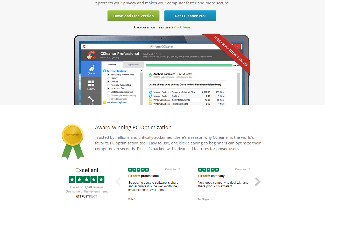 CCleaner is the number-one tool for cleaning your PC. It protects your privacy and makes your computer faster and more secure!