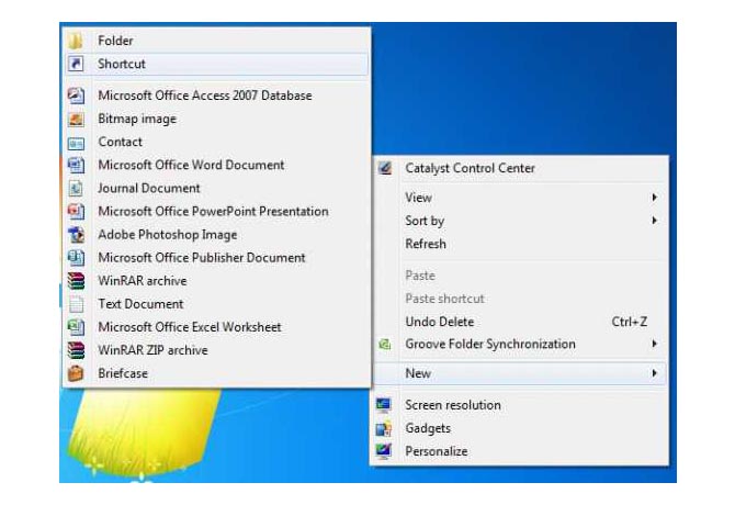 > ডেক্সটপ এরিয়াতে মাউসের রাইট বাটন ক্লিক করুন। তারপর New > Shortcut অপশনটি সিলেক্ট করুন।