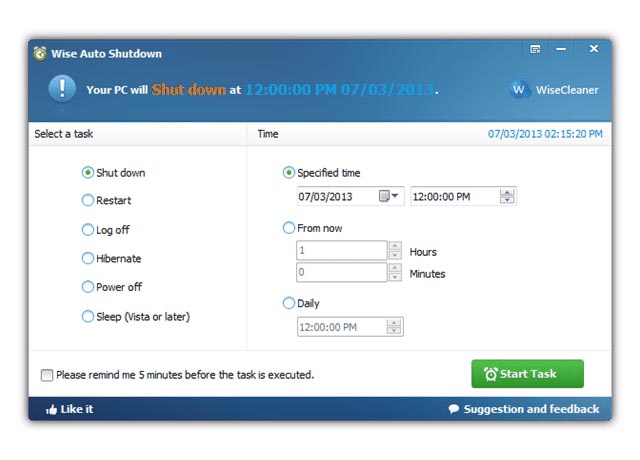 ➡ Wise Auto Shutdown প্রোগ্রামটি ডাউনলোড করে নিন এখান থেকে।