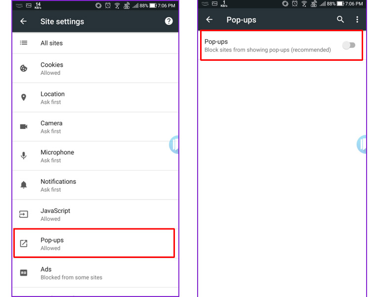 গুগল ক্রোমে আপনি pop-up ads ব্লক করে সকল প্রকার বিজ্ঞাপণ প্রদর্শন করা হতে বেঁচে থাকতে পারবেন। এই পপ আপ এডস গুলো অনেক সময় নতুন ট্যাবে খুলে যায় এবং এটি বেশ বিরক্তিকর। আর গুগল ক্রোম অ্যান্ড্রয়েডে বিল্ট ইন পপ আপ এডস ব্লকার রয়েছে আর এটা কিভাবে একটিভ করে সেটা নিচে দেখাচ্ছি: