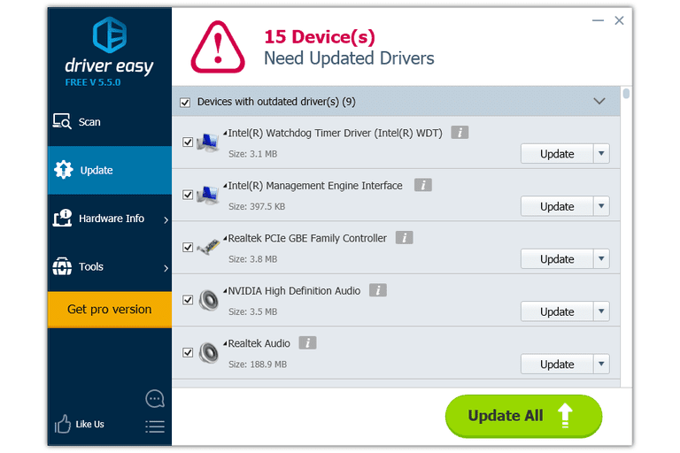 ব্যক্তিগত এবং কমার্শিয়াল উভয় প্রকার ব্যবহারের জন্য ফ্রি একটি ড্রাইভার আপডেট টুলস হচ্ছে ড্রাইভার ইজি। এটির মাধ্যমে ড্রাইভার আপডেট দেওয়া খুব সহজ। জাস্ট টুলটি দিয়ে আপনার পিসিকে স্ক্যান করে নিন, স্ক্যান রেজাল্টে কোন কোন ড্রাইভার আপডেট দিতে হবে বা কোন কোন ড্রাইভারগুলো ইন্সটল করা নেই সেগুলোকে আপনি দেখতে পারবেন। এবার আপনি সকলগুলোকে একই সাথে ডাউনলোড করে নিতে পারবেন কিংবা নির্দিষ্ট করে আপনার প্রয়োজন মাফিক একটি একটি করে আপডেট দিতে পারবেন। এছাড়াও সফটওয়্যারটিতে রয়েছে শিডিউল মাফিক স্ক্যানিং ফিচার।