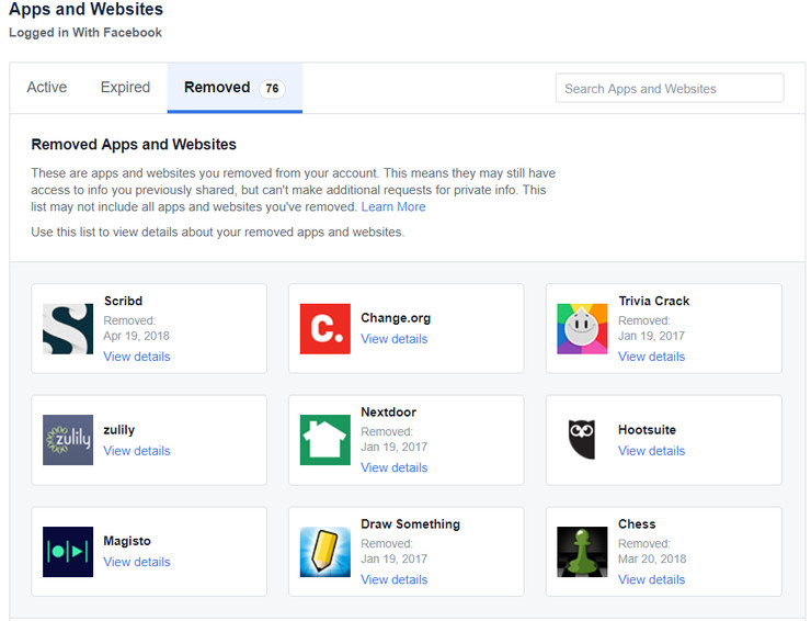 এই অপশনের শেষ ট্যাবটি হলো Removed। এখানে আপনি এ যাবৎপর্যন্ত যতগুলো অ্যাপস এবং ওয়েবসাইট ডিলেট করে দিয়েছেন সেগুলোকে দেখতে পাবেন। কোনো এন্ট্রির উপর সন্দেহ হলে সেটা নিচের View details লিংকে ক্লিক করে সেটার বিস্তারিত তথ্য আপনি জেনে নিতে পারবেন।