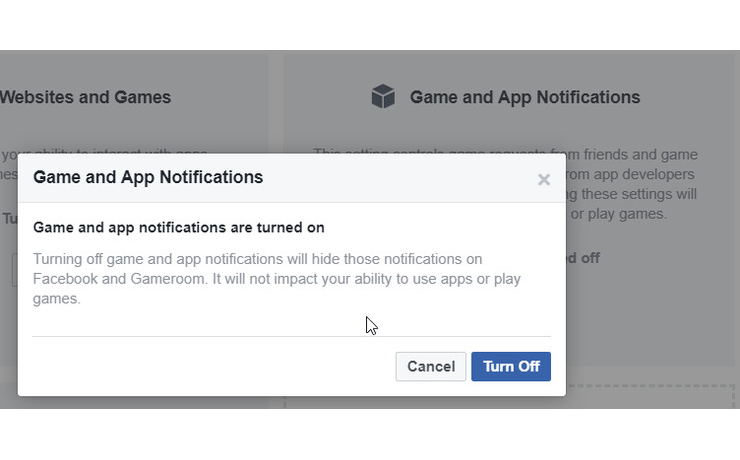 Apps and Websites পেজে থাকা অবস্থায় ডান দিকে আরেকটি বক্স পাবেন যার নাম Game and App Notifications। এখানে চলে আসুন। এডিট বাটনে ক্লিক করুন। একটি পপ আপ বক্স আসবে, সেখান থেকে Turn Off বাটনে ক্লিক করে আপনি আপনার ফেসবুকে একাউন্টে আপনার ফ্রেন্ড লিস্টের কাছ থেকে বিরক্তিকর গেম রিকোয়েস্ট নোটিফিকেশন থেকে মুক্ত থাকতে পারবেন। এখানে ডাটা শেয়ারিং এর কোনো বিষয় নেই কিন্তু আমার কাছে ব্যাপারটা বেশ বিরক্তটিকর বিধায় আপনাদের সাথে জিনিসটি শেয়ার করে নিলাম।