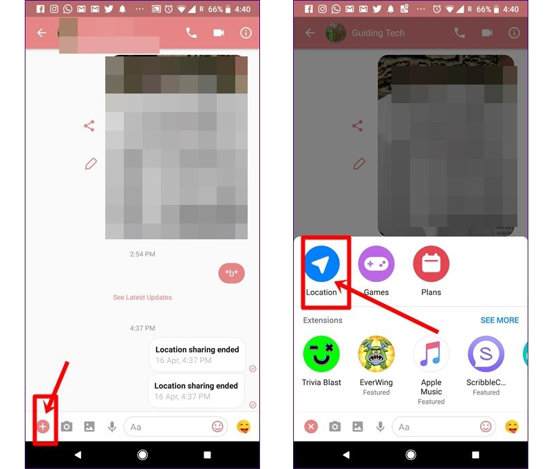 আপনার ফেসবুক বন্ধুর সাথে মেসেঞ্জারে লাইভ লোকেশন শেয়ার করতে চাইলে চ্যাট ওপেন করুন। নিচের বাম দিকে গোলাকার (+) আইকনে প্রেস করে পরবর্তী পপআপ মেন্যু থেকে Loaction অপশনে ট্যাপ করুন।