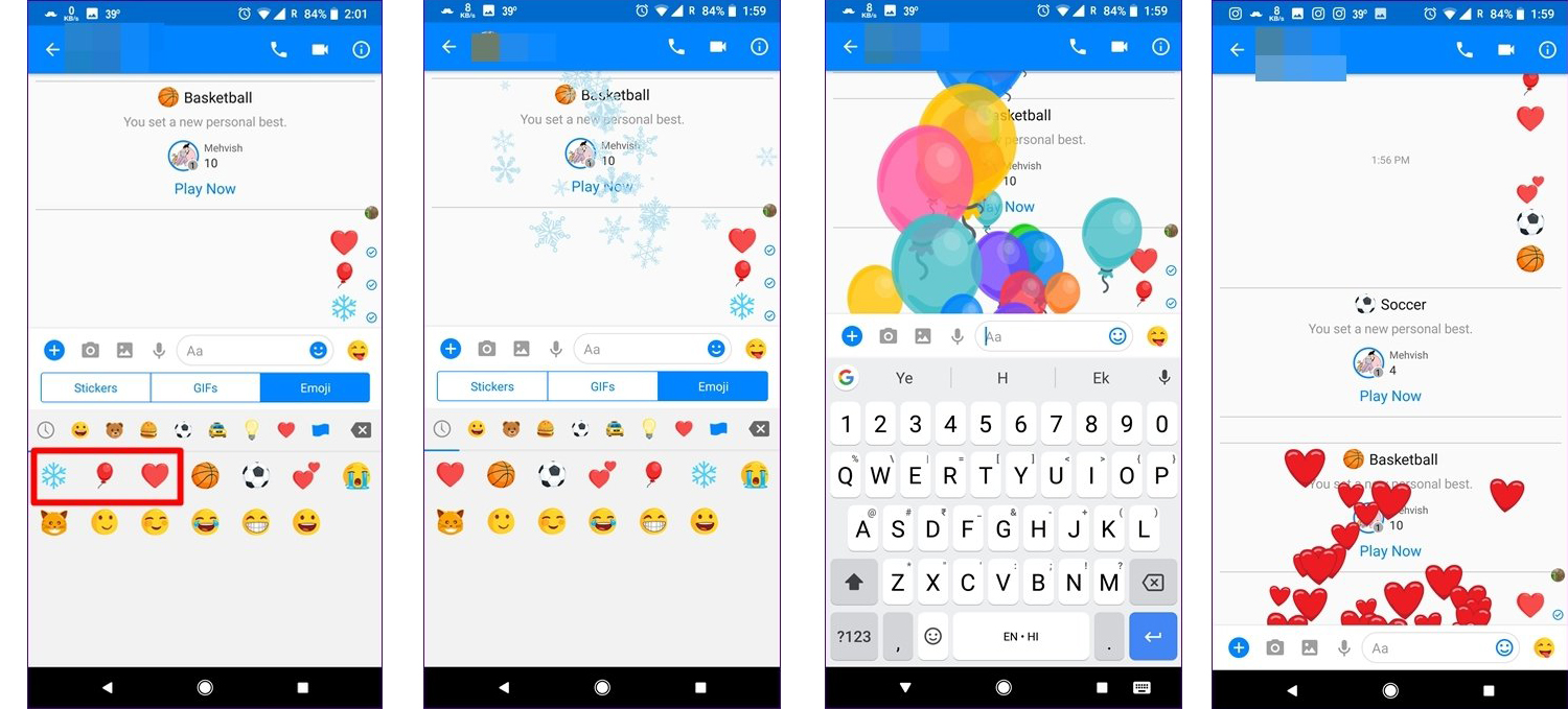মেজেঞ্জারে চ্যাট করতে করতে বোর হয়ে গিয়েছেন? বা গ্রুপ চ্যাটে বিচিত্রতা আনতে চান? তাহলে ফেসবুক মেসেঞ্জারের ইমোজি গেমস খেলে নিতে পারেন এবং বন্ধুদের সাথে স্কোর নিয়ে প্রতিযোগীতাও করতে পারবেন। বাস্কেটবল বা ফুটবল ইমোজিকে সেন্ড করার পর সেটায় যদি আপনি ট্যাপ করেন তাহলে দেখবেন মেসেঞ্জারের ভেতরেই আলাদা করে উক্ত ইমোজির গেমস চালু হয়েছে। উল্লেখ্য যে এই গেমসগুলো খেলতে আলাদা করে কোনো মেগাবাইট কাটবে না এবং এটা কোনো থার্ড পার্টি গেমস নয় তাই মেসেঞ্জারও স্লো হবে না। ইমোজি গেমস ছাড়াও ফেসবুক মেসেঞ্জারে গেমস নামের আলাদা সেকশন রয়েছে। ফেসবুক মেসেঞ্জারের নিচের দিকে Games আইকনে প্রেস করে সকল গেমসগুলোকে আপনি ভিজিট করতে পারবেন।