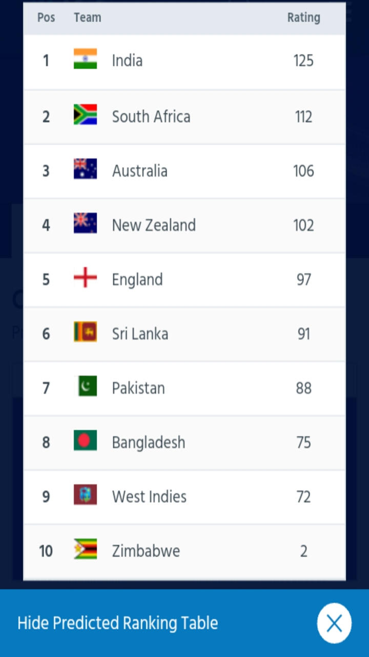 Ranking predictor হচ্ছে icc ইন্টারন্যাশনাল ক্রিকেট কাউন্সিল এর একটি সিস্টেম। যা দিয়ে আপনারা সকল টিমের ranking predictor করতে পারবেন।
