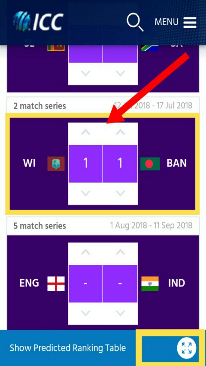 Ranking predictor দিয়ে জানতে পারবেন একটি ম্যাচ হারার পর সেই টিম টি রেংকিং কত পয়েন্ট হারাতে পারে বা রেংকিংয়ে কততে চলে যেতে পারে ranking predictor দিয়ে আপনারা আগেই আপনার পছন্দের দলের পয়েন্ট জেনে নিতে পারবেন। তাহলে কিভাবে করা যায় Ranking Predictor. চলুন দেখে নিই। প্রথমেই নিচের লিংকে প্রবেশ করুন।