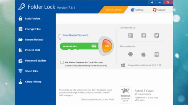 গোপনীয় কোন তথ্য লক করার ক্ষেত্রে Folder Lock সফটওয়ারটির তুলনা নেই। আমার মতে লকিং এর জন্য এটিই ওয়ার্ল্ডের সেরা সফটওয়ার, যার মূল্য 39.95$। কিন্তু চিন্তার কারণ নেই, আপনি একদম ফ্রিতেই সফটওয়াটির ফূল ভার্শনই ডাউনলোড করতে পারবেন। Folder Lock নিয়ে আগে ইতোমধ্যে একাধিক টিউন হওয়া সত্তেও আজ আপনাদের সাথে Folder Lock এর Latest Version 7.0.6 টি শেয়ার করার জন্যই পুনরায় টিউনটি করা। আর এই ভার্শনটি রিলিজ হয়েছিল January, 13th 2012 তারিখে।