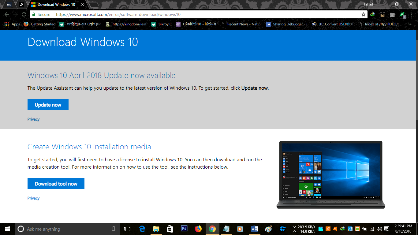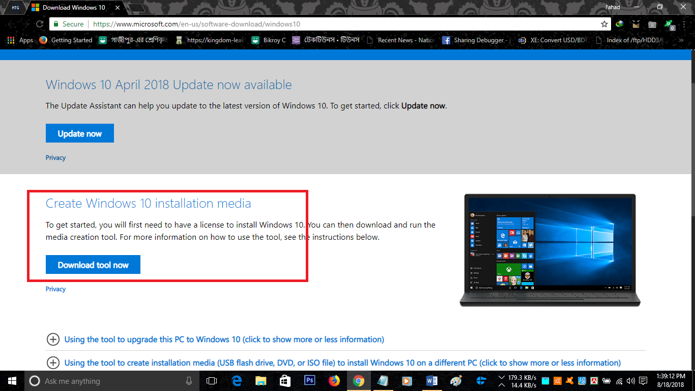 এখানে গেলে দেখবেন যে ১ম পদ্ধতির মতোই মিডিয়া ক্রিয়েশন টুলের লিংক দেখাচ্ছে! তবে হতাশ হবেন না!