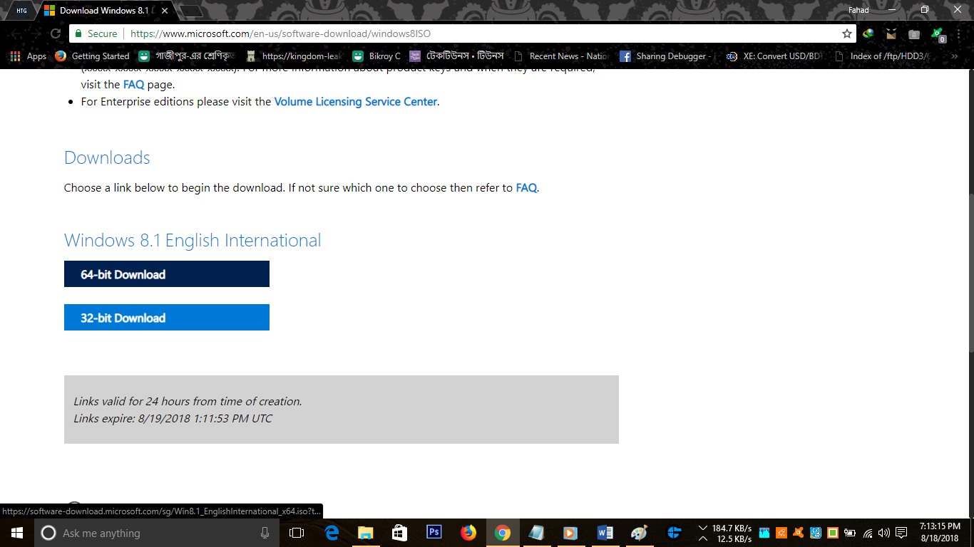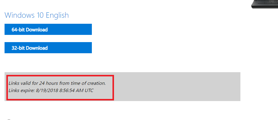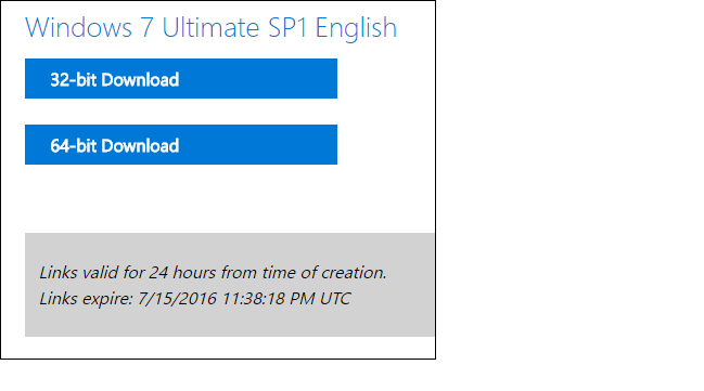 খেয়াল করে দেখুন যে এভাবে তৈরিকৃত লিংকটি ২৪ ঘন্টার জন্য অনলাইনে থাকবে, তাই ২৪ ঘন্টার মধ্যে লিংকটি দিয়ে আপনাকে উইন্ডোজ ১০ ডাউনলোড করতে হবে। ২৪ ঘন্টার লিমিট না থাকলে আমি এই টিউনে সরাসরি লিংকগুলো দিয়ে দিতাম।