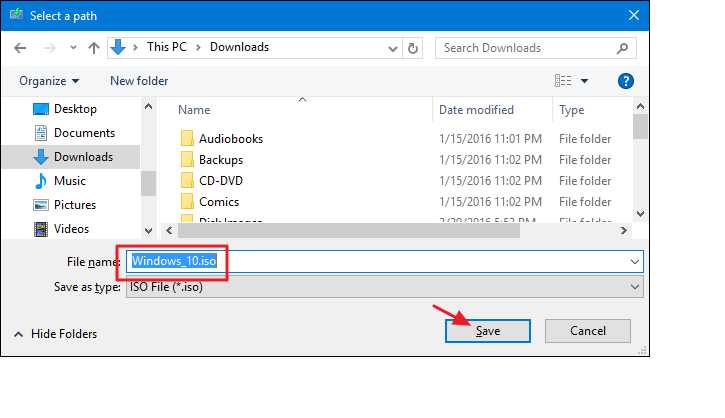 ৬) next বাটনে ক্লিক করার পর একটি পপ আপ উইন্ডো আসবে, এখানে windows 10 এর iso ফাইলটি আপনার পিসির কোথায় ডাউনলোড করতে চান মানে কোথায় সেভ করতে চান সেটির path কে দেখিয়ে দিন, তারপর Save বাটনে ক্লিক করুন।
