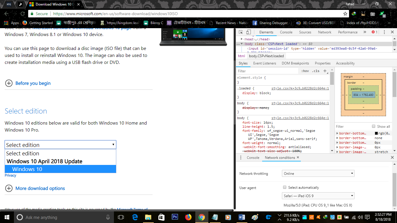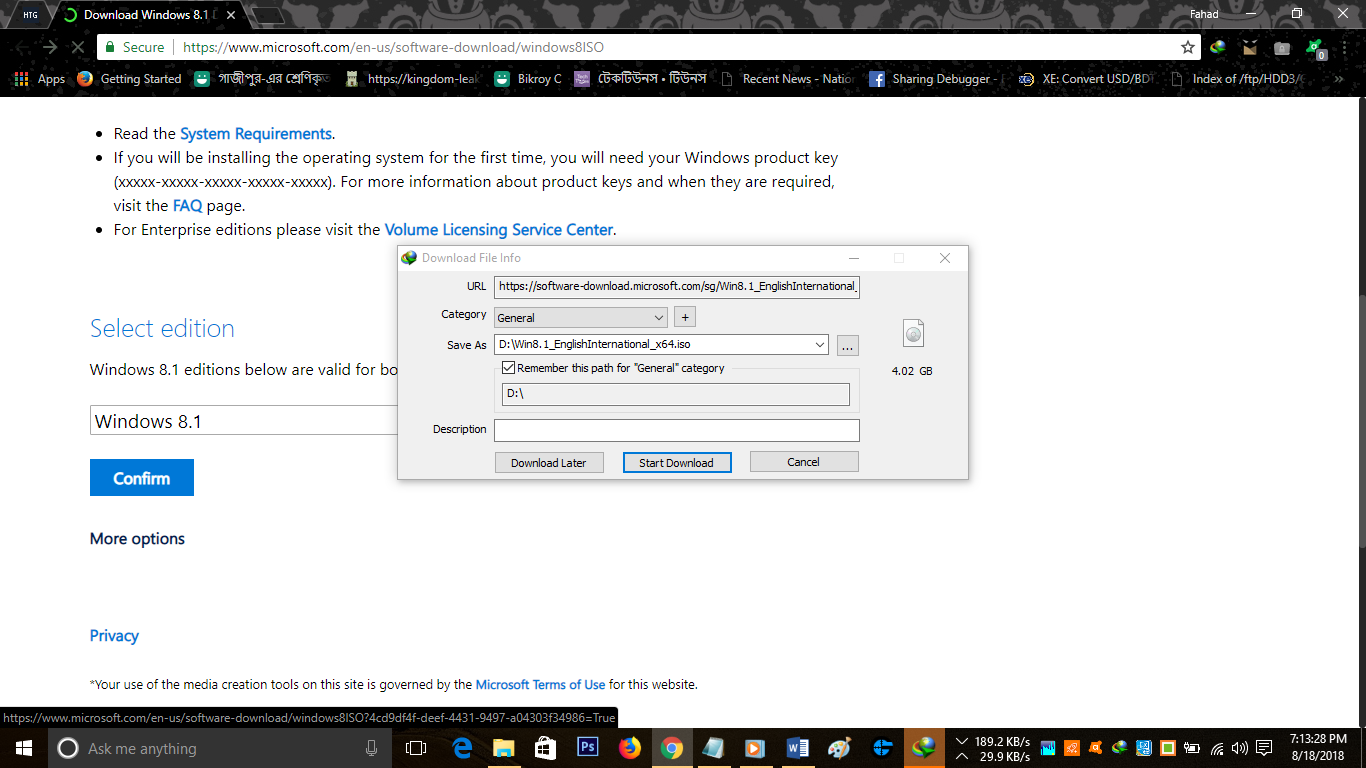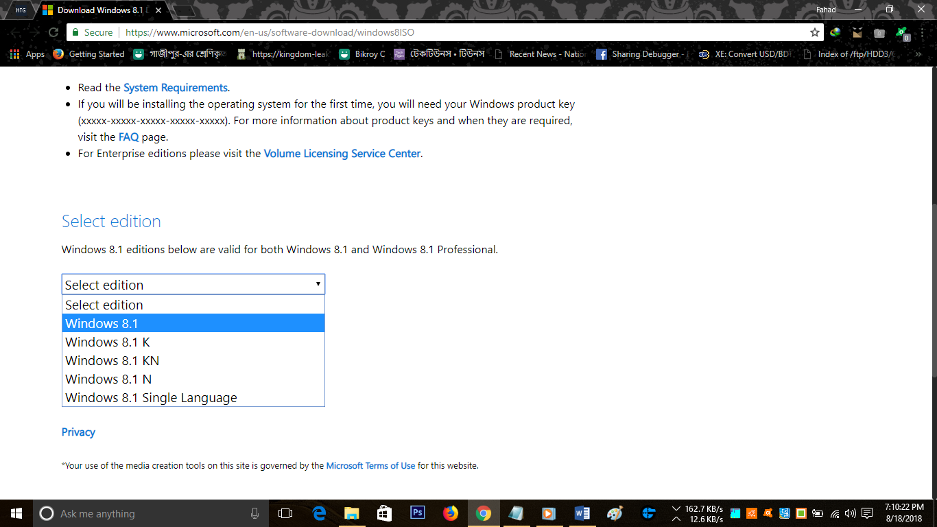 উইন্ডোজ ১০ এবং উইন্ডোজ ৮.১ এর জেনুইন ISO ফাইল ডাউনলোড করার সিস্টেমটি একই। তাই এখানে আমি উইন্ডোজ ১০ ডাউনলোড করে দেখালাম। তবে আপনার যদি উইন্ডোজ ৮.১ ডাউনলোড দিতে কোনো সমস্যা হয় তাহলে কোনো সংকোচ না করে নিচের টিউমেন্ট বক্সে সেটা আমাকে জানিয়ে দিতে পারেন। এছাড়াও বিকল্প পদ্ধতি আমি টিউনে যোগ করে দিচ্ছি।