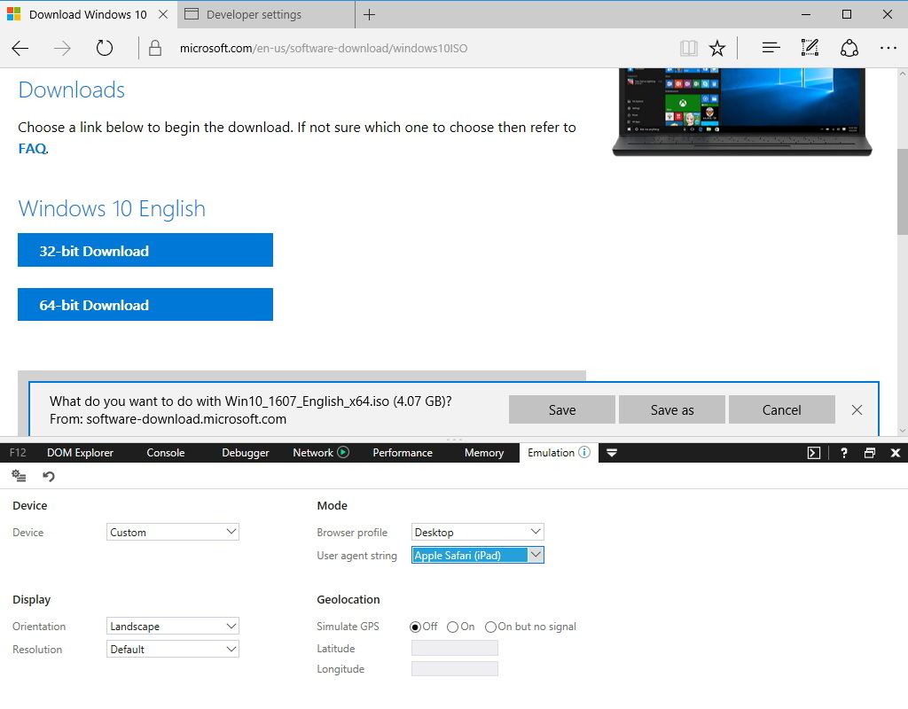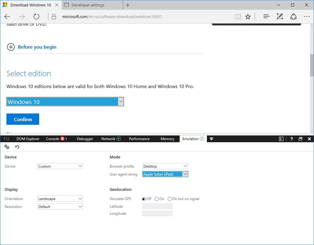 এই পদ্ধতি শুধুমাত্র ইন্টারনেট এক্সপ্লোরার (মানে MS EDGE আরকি!) এবং গুগল ক্রোমে করা যায়। মজিলা এবং অনান্য ব্রাউজারেও করা যায় তবে সেগুলো বেশ ঝামেলা তাই আপনি গুগল ক্রোম মানে এই পদ্ধতিটি ব্যবহার করতে পারেন। সঠিক ভাবে এই পদ্ধতিটি ফলো করতে পারলে আপনি সরাসরি IDM বা অন্য ডাউনলোড ম্যানেজার দিয়েই মাইক্রোসফট সার্ভার থেকে জেনুইন এবং ফ্রেশ উইন্ডোজ ১০ ডাউনলোড করতে পারবেন।