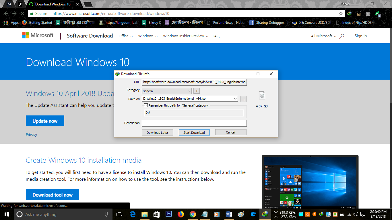 এভাবে আপনি আপনার কাংখিত windows 10 অপারেটিং সিস্টেমের জেনুইন এবং ফ্রেশ iso ফাইল পেয়ে গেলেন। এবার এটাকে পেনড্রাইভে বুটেবল করে কিংবা ডিভিডি ডিক্সে বার্ন করে ফ্রেশ ভাবে উইন্ডোজ দিতে পারবেন।