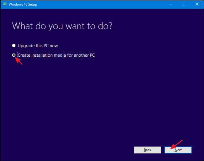 ৩) এবার টুলটি আপনাকে জিঙ্গাসা করবে আপনি কি করতে চান। এখানে "Create Installation Media for Another PC" বক্সে ক্লিক করুন এবং নিচের Next বাটনে ক্লিক করুন। (কারণ পিসি আপগ্রেড করার জন্য উইন্ডোজ আপডেট অপশনই তো রয়েছে!)