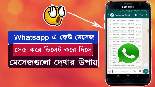 Whatsapp এ কেউ আপনাকে একটি মেসেজ সেন্ড করলো। আপনি মেসেজ টি দেখার আগেই তা সে ডিলেট করে দিলো। এখন আপনি হয়তবা ভাবতেছেন কি মেসেজ সেন্ড করেছিলো? সেন্ড করলো তো ডিলেট করে দিলো কেন? তাই না?