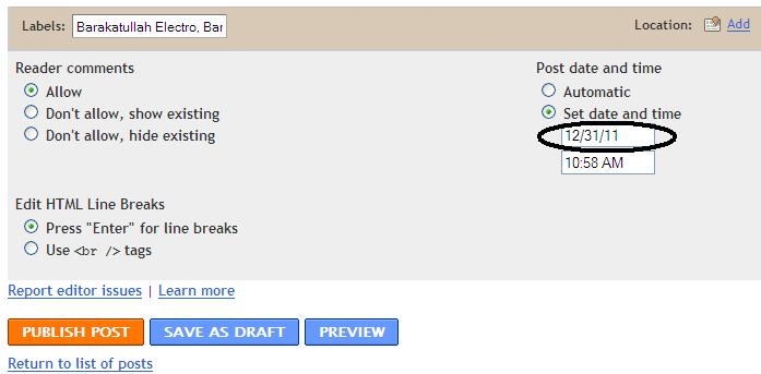 ৭। এখন মার্ক করা যায়গায় পোষ্ট পাবলিশ করার সময় সুচি চলে আসবে, আর ব্লগার বন্ধুরা আসল কাজ কিন্তু এখানে-ই...