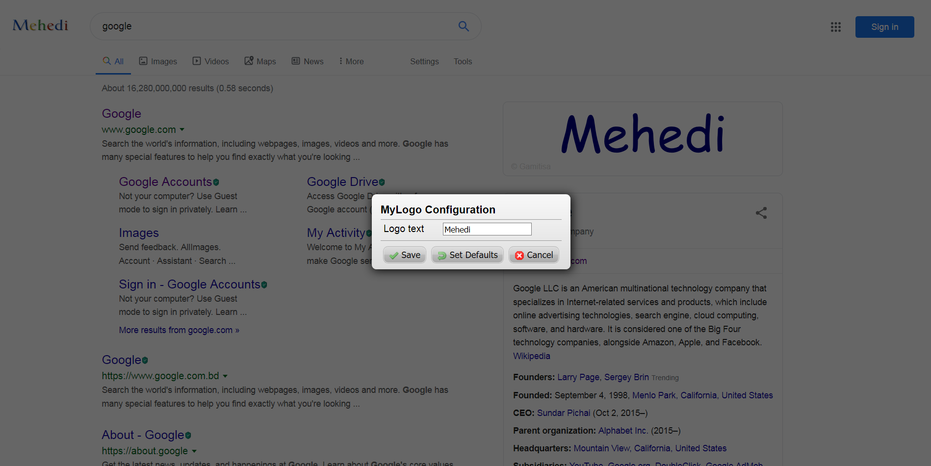 চলুন দেখি কিভাবে Google এর Homepage এবং Search Result Page এ Google এর লোগো এর জায়গায় আপনার নিজের নাম লিখতে পারবেন।