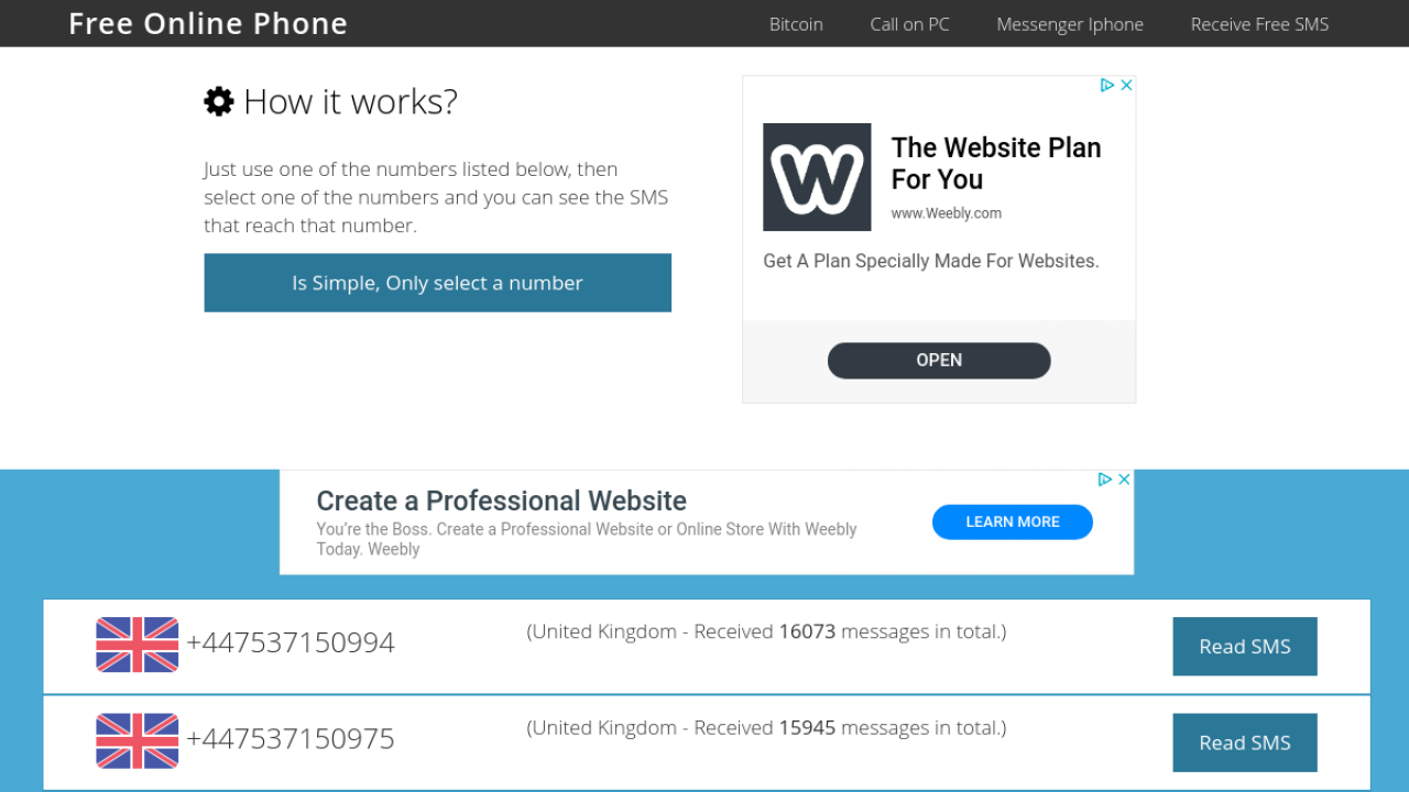 এই ওয়েব সাইটটি অন্যান্য সব ওয়েব সাইটের মতোই একই সেবা প্রদান করে থাকে, Receive SMS Online টেম্পোরারি ফ্রী মোবাইল ফোন নাম্বার দিয়ে রেজিস্ট্রেশন অথবা পরিচয় ভেরিফিকেশনের জন্য প্রদান করে, যেমনঃ মার্কিন যুক্তরাষ্ট্র, যুক্তরাজ্য এবং কানাডা এই দেশের নাম্বার প্রদান করে। আর এর পরের প্যারাতে আমি যে সেবা নিয়ে আলোচনা করবো তা এই কোম্পানির অন্য একটি ওয়েব সাইট। যেকোন নাম্বারে এসএমএস পাওয়ার জন্য Read SMS বাটনে ক্লিক করুন, আর সবচেয়ে খুশির খবর হল এই সেবা আপনি একদম ফ্রিতেই পেয়ে যাবেন।