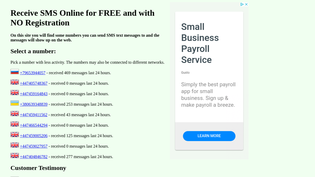 Website link: http://receivefreesms.com/](http://receivefreesms.com/)