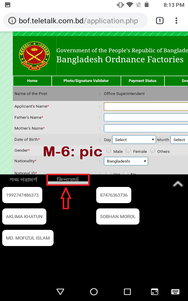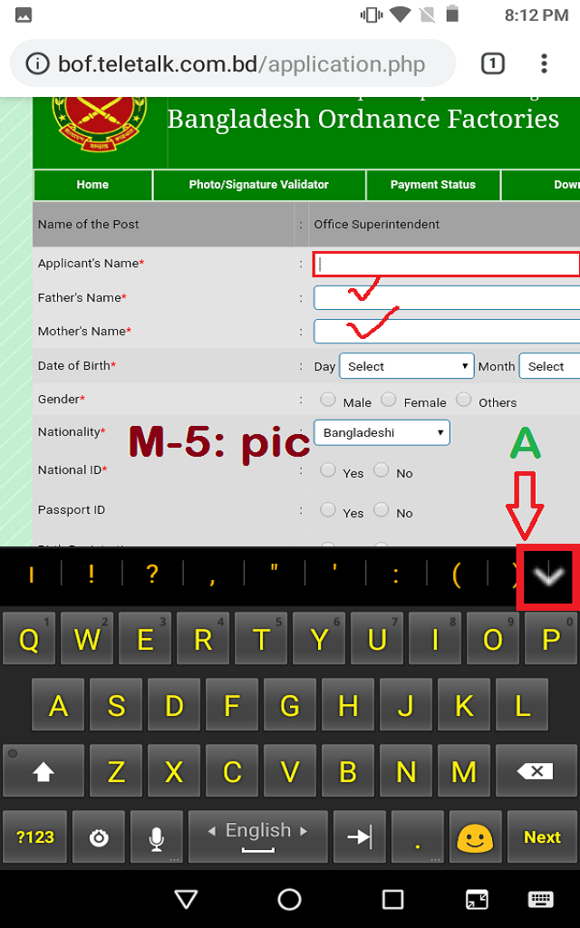 🗼M-5: যেকোন Job form এ যান। খালি বক্সে ক্লিক করতেই Mayabi keyboard open হবে। তারপর "A"তে ক্লিক করুন।