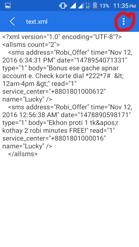 ৩. নির্ধারিত কনভার্সেশন সিলেক্ট করুন এবং BACKUP সিলেক্ট করুন। এখানে আমি Robi_Offer সিলেক্ট করলাম।