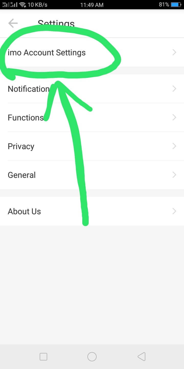 4. সেটিংস অপশনে ক্লিক করার পর আপনি অনেকগুলো অপশন দেখতে পাবেন। সেই অপশনগুলো থেকে আপনি প্রথম অপশন অর্থাৎ IMO Account Settings এই অপশনটিতে ক্লিক করবেন।