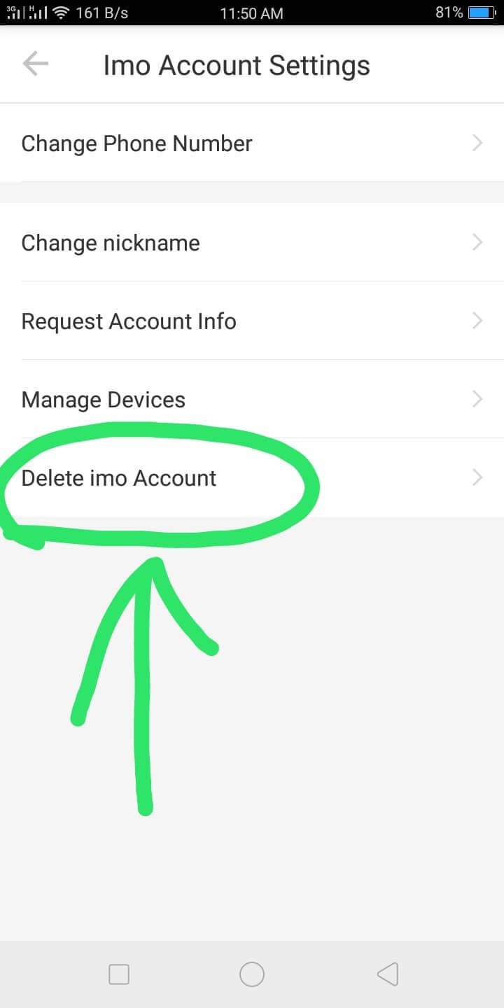 5. IMO Account Settings অপশনটিতে ক্লিক করার পর আপনি আরো অনেকগুলো অপশন দেখতে পাবেন। সেই অপশনগুলো থেকে আপনি সবার নিচের অপশনটি অর্থাৎ Delete IMO Account এই অপশনটিতে ক্লিক করুন।
