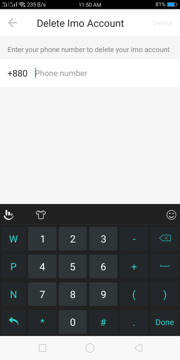 6. অপশনটিতে ক্লিক করার পর 0 ছাড়া আপনি আপনার ইমু নাম্বারটি এখানে দিবেন। ইমু নাম্বারটি দেওয়ার পর ডান পাশে উপরের দিকে একটি লাল কালার ডিলিট (Delete) অপশন দেখতে পাবেন।