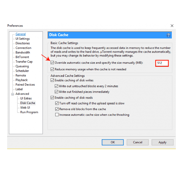 uTorrent তার মেমরিতে ডাটা সেভ রাখতে এবং পরবর্তীতে ভাল সার্ভিস দিতে ব্যবহার করে। এটি কনফিগারেশন করেও আপনি আপনার স্পীড বাড়াতে পারেন।