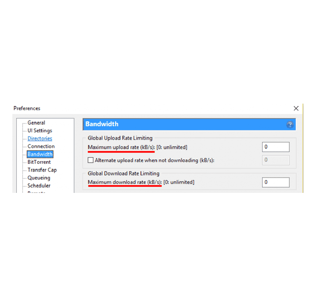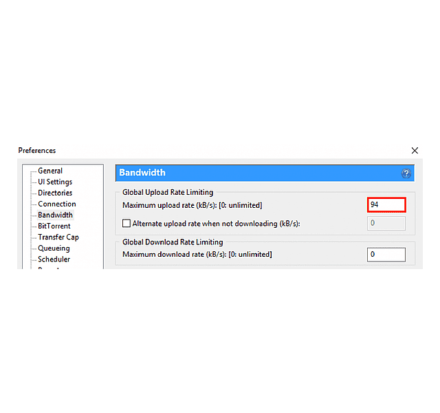 এবার আমরা ব্যান্ডউইথ সেটিং করব। প্রথমে আপনি কনফিগারেশন করার জন্য Options > Preferences > Bandwidth যান। এখানে আপনাকে ভ্যালু গুলো বসাতে হবে।