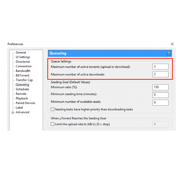 “Maximum number of active torrents” এ ৩ দিন এবং "Maximum Number of active Download" এ ২ দিন।