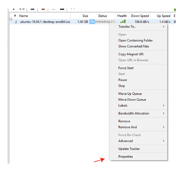 প্রথম একটিভ কোন টরেন্টের properties এ যান